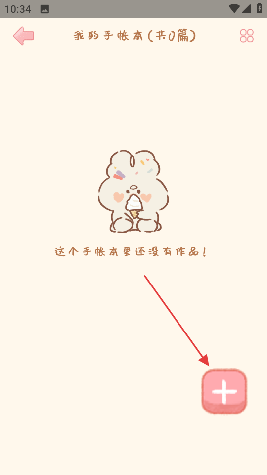 2、在我的手帐本页面,点击右下角+号,进入手帐编辑页面。
