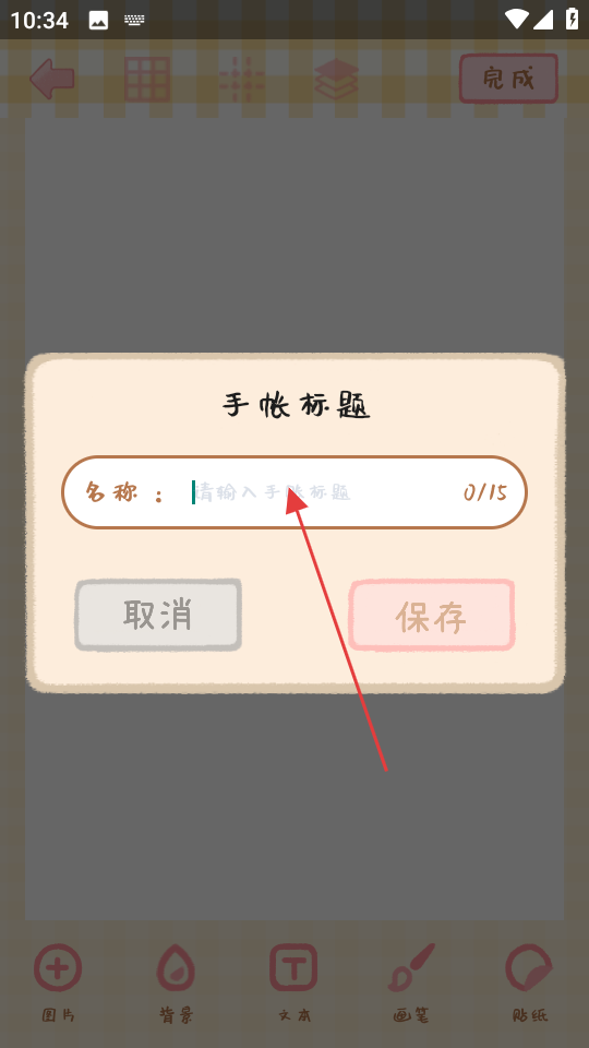 4、在输入框中输入手帐标题,点击保存,完成手帐创建。