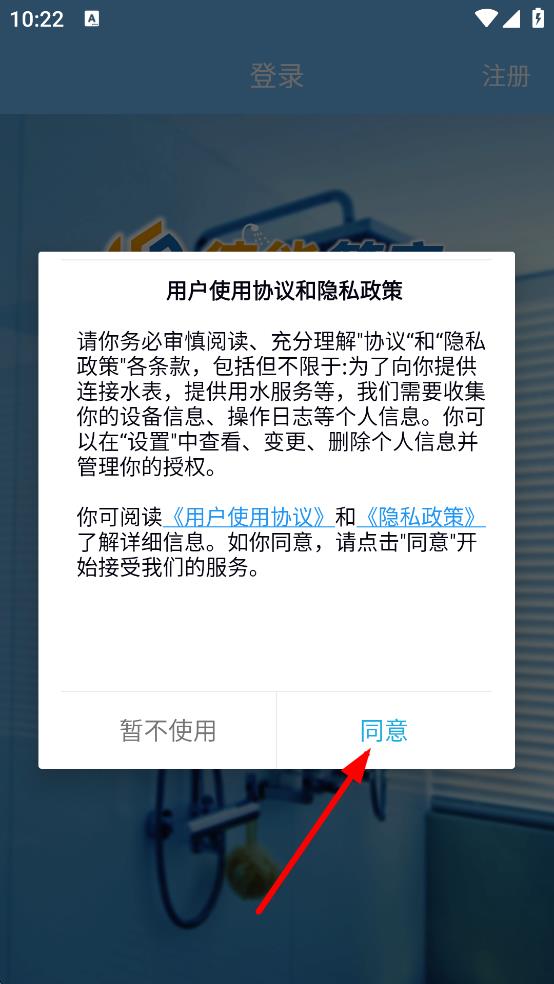 1、在用户使用协议和隐私政策弹窗中,点击同意,进入登录页面。