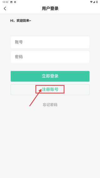 3、在用户登录界面,点击注册账号选项,进入用户注册页面。