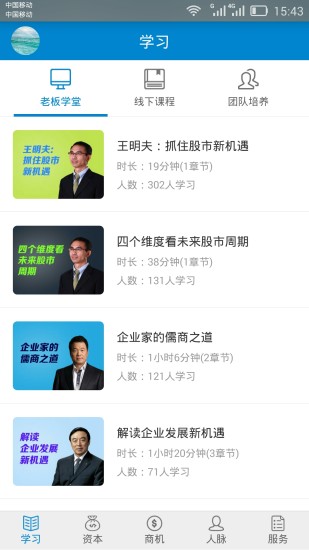 5.学习:老板课堂、线下培训指南、团队培养,全方位提升您及企业团队潜力