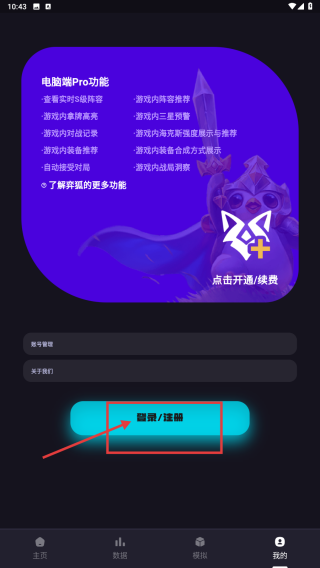 1、打开云顶之弈辅助类应用,点击底部我的选项,进入个人页面。