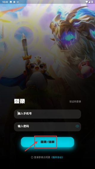 4、输入手机号和密码,勾选协议后点击登录/注册按钮,完成账号登录或注册。