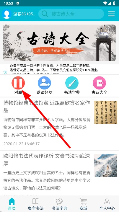 1、打开APP,点击底部导航栏首页,点击对联功能入口。