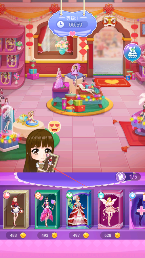 4、持续经营店铺,用金币解锁更多娃娃丰富库存,满足不同顾客需求提升店铺等级。