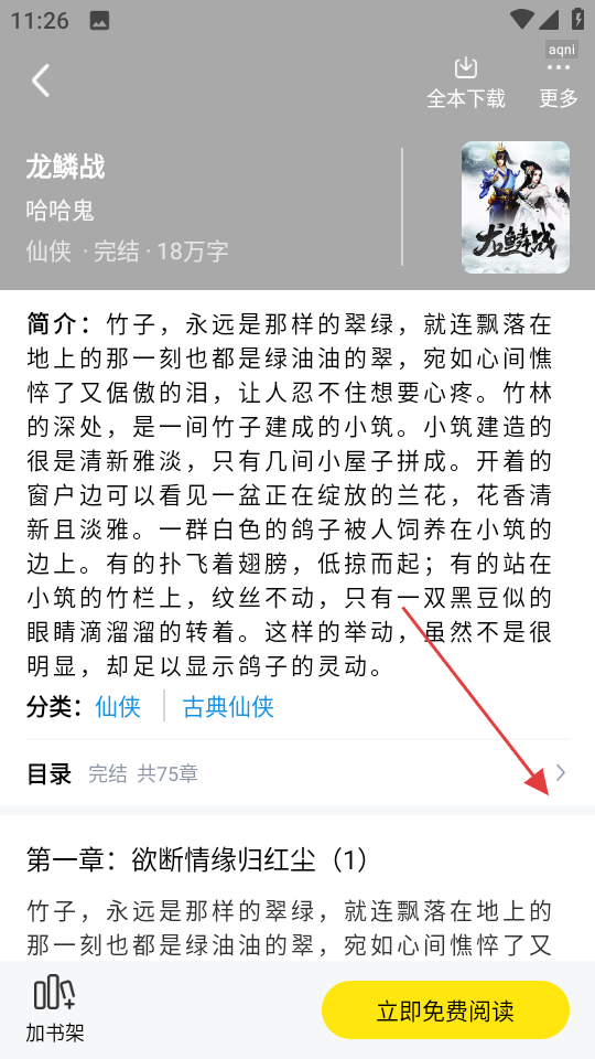 3、在龙鳞战详情页面,点击目录区域,进入章节列表页面。