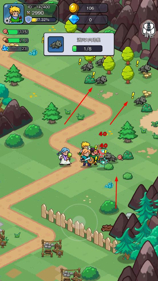 4、面对消灭8只幼狼的挑战任务,在有幼狼分布的区域主动发起战斗,逐步完成消灭数量要求,提升游戏成长度。