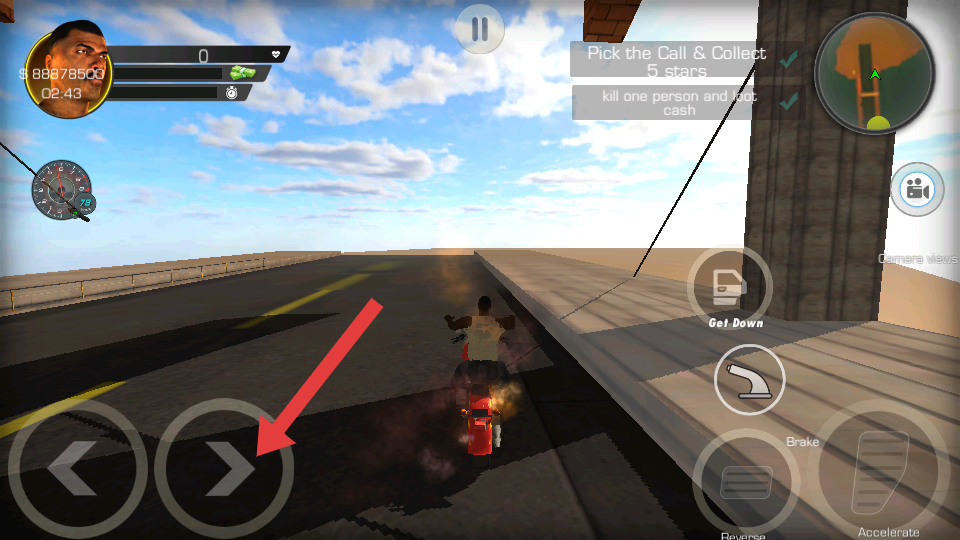 1、留意游戏界面中的电话图标,当图标闪烁时点击接听,根据通话提示确定星星位置;在城市中驾驶摩托车或步行前往目标点。