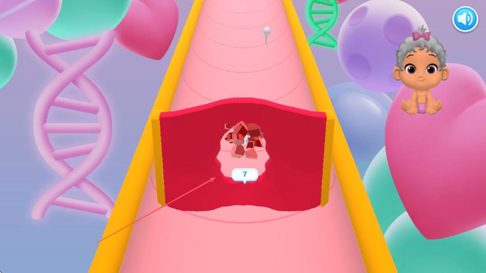 4、持续前进,躲避如绿色病菌等各种障碍物,尽可能多地收集精子,抵达关卡终点。