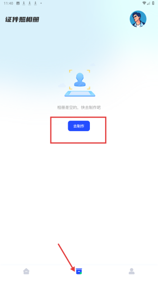 2、点击底部相册选项,进入证件照相册页面,若相册为空,可点击去制作按钮,制作证件照。