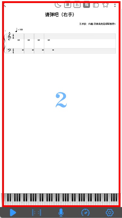 4、随后即可查看该曲目的钢琴谱,谱面下方还带有模拟钢琴键盘,方便进行弹奏练习。
