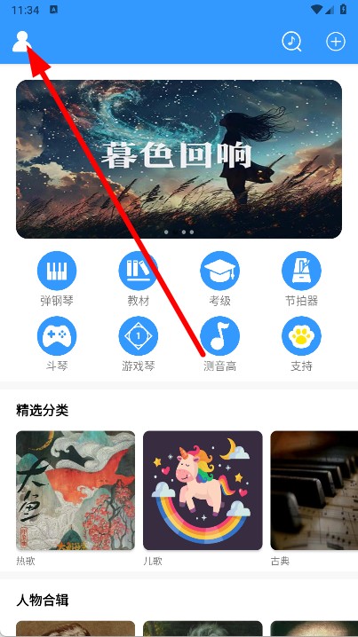 1、打开乱弹琴,点击左上角个人头像,展开功能菜单。