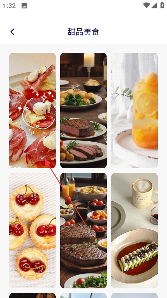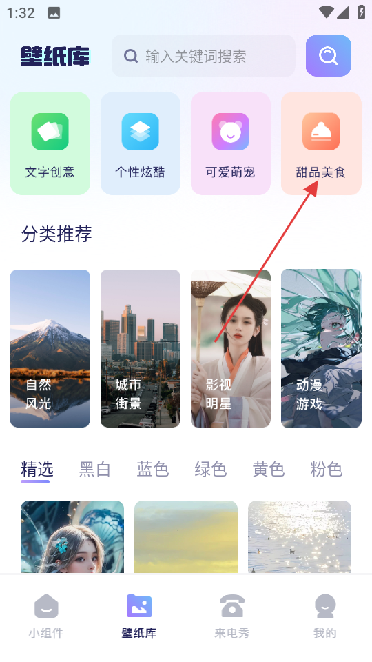 2、在壁纸库页面,点击甜品美食,进入甜品美食类壁纸列表页面。
