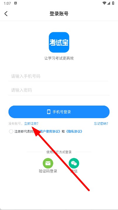 3、在登录账号界面,点击立即注册,跳转至注册账号页面。