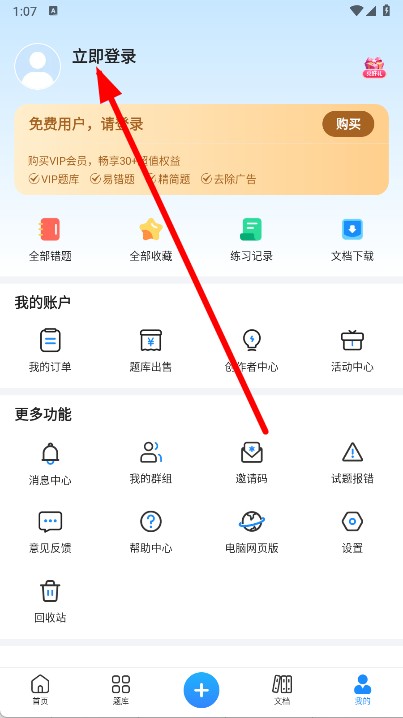 2、在个人中心页面,点击立即登录,进入登录账号界面。