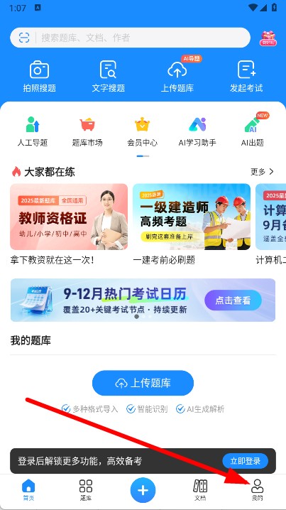 1、打开考试宝APP,点击底部导航栏我的,进入个人中心页面。