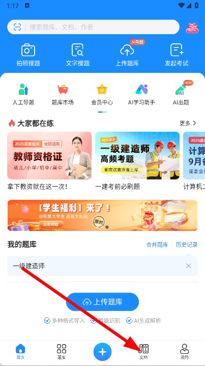 1、打开APP,点击底部导航栏的文档选项,进入文档下载页面。