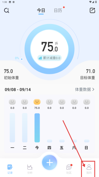1、打开体重管理类应用,点击底部我的选项,进入个人页面。
