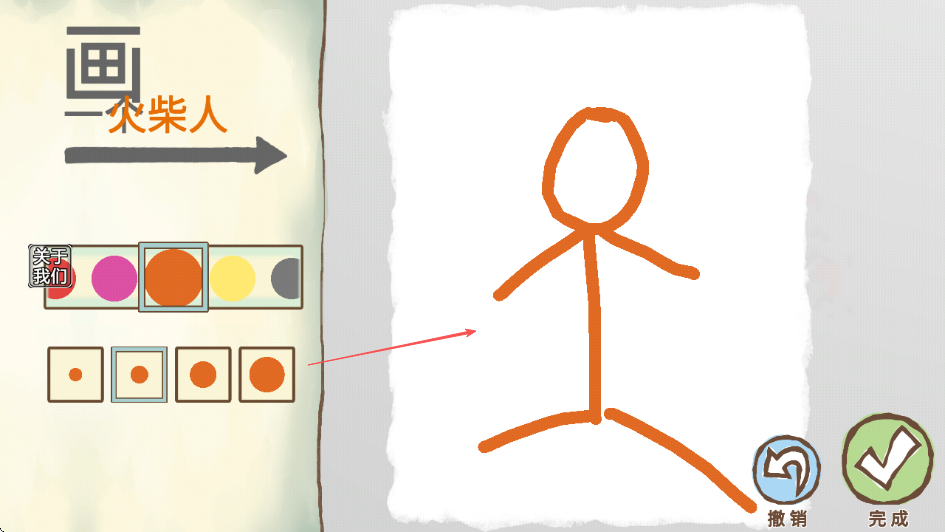 1、进入游戏,看到画火柴人提示,在左侧选择画笔颜色,然后在右侧空白处绘制火柴人的轮廓。