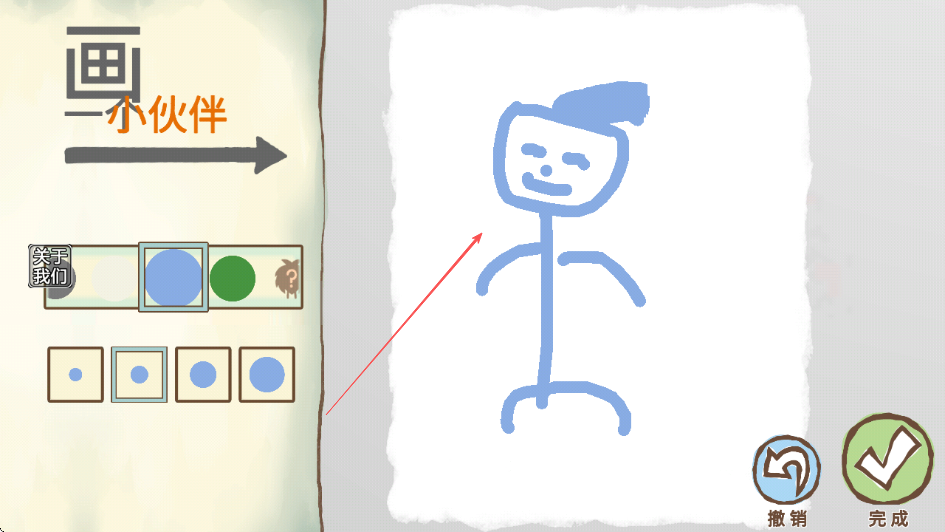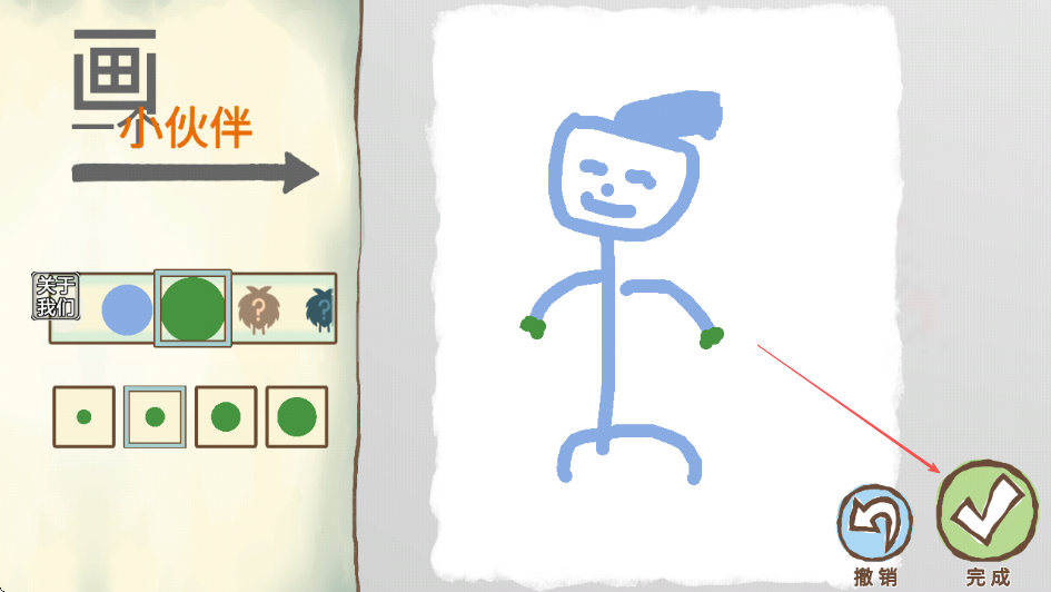 4、完成绘制后,点击右下角完成按钮,确认并保存所画角色,开启后续游戏内容。