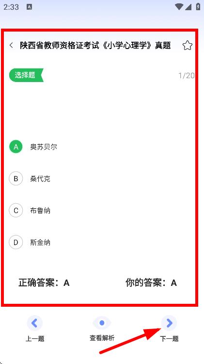 4、进入真题页面,可答题,完成一题后点击下一题继续答题。
