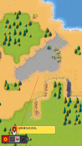 3、在地图界面,根据提示选择派别,不同派别在单位、建筑、技能上有差异,慎重选择以确定游戏风格。