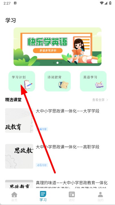 2、点击学习计划功能入口,进入学习计划设置界面。