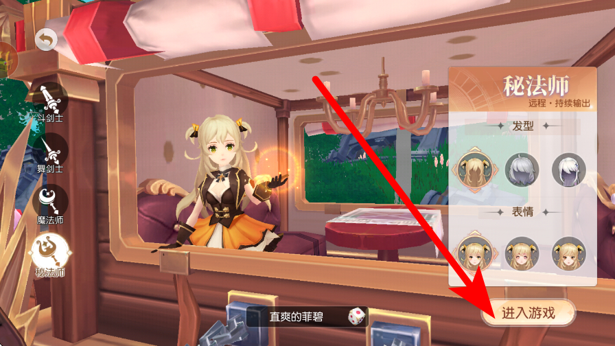 1、首先创建角色职业,角色创建界面,可选择秘法师等职业,还能定制发型、表情等,打造独特角色形象,之后点击进入开启冒险。