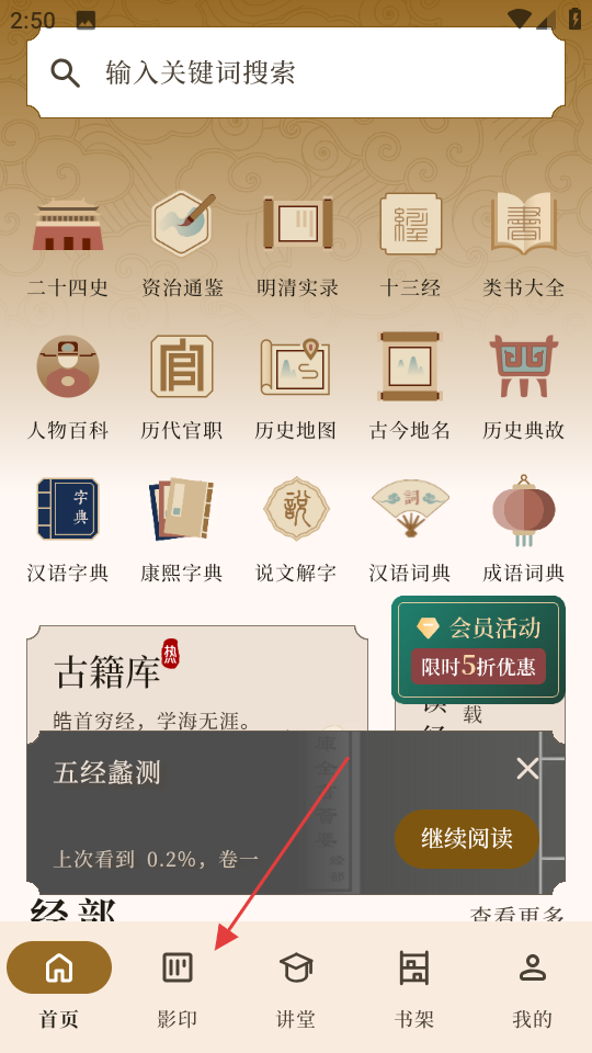 3、书架功能实用:允许用户将喜欢的古籍加入个人书架,便于随时打开阅读,记录阅读进度,满足碎片化阅读需求。