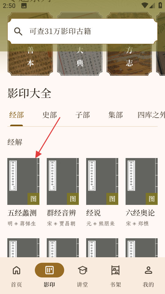 2、在影印页面,选择五经蠡测,进入该书详情页面。