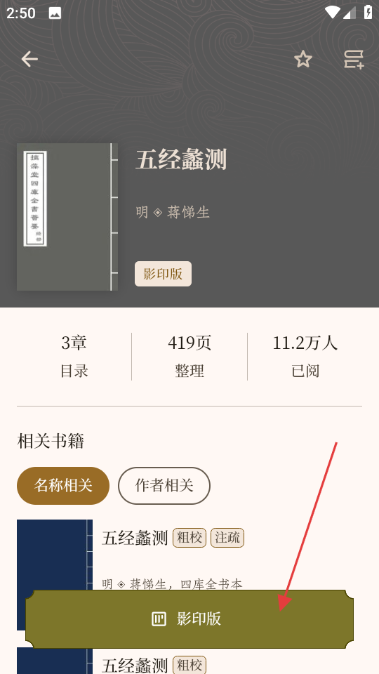 3、在书籍详情页面,点击影印版,进入五经蠡测影印版阅读页面。