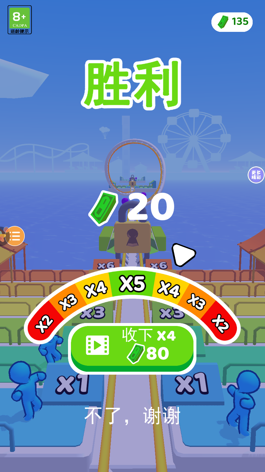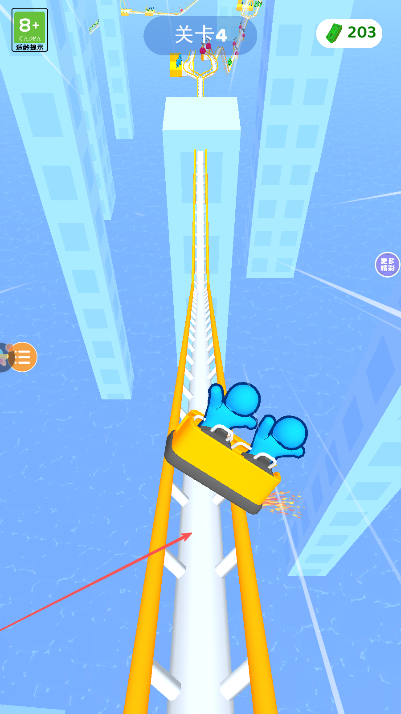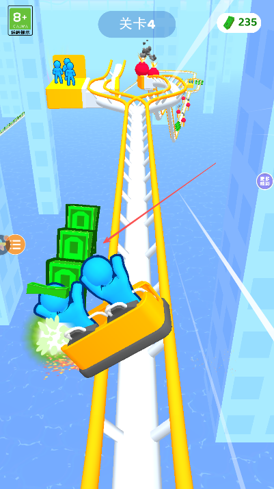 2、在关卡4中看到轨道旁钞票时调整过山车位置尽可能多收集增加分数。