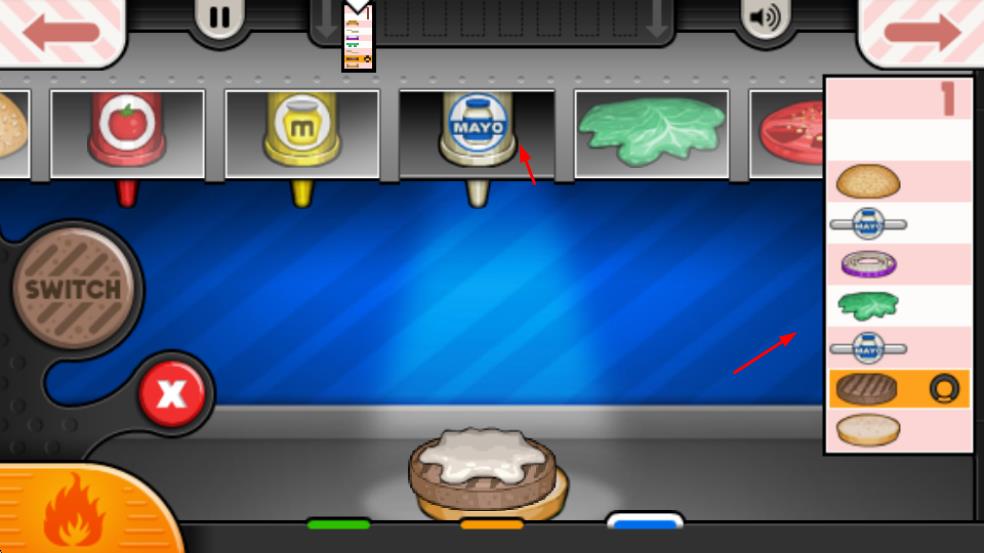 2、在汉堡制作区,根据订单添加相应配料,组合出符合要求的汉堡结构。