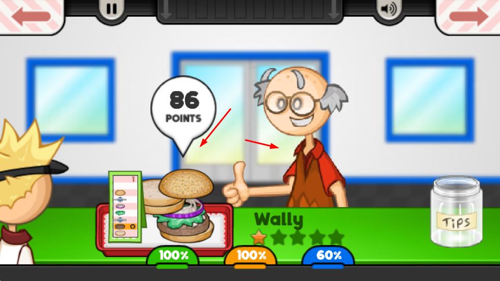 4、将制作完成的汉堡交付给顾客,获取顾客评分与好评,积累经营成果,提升店铺运营效果。
