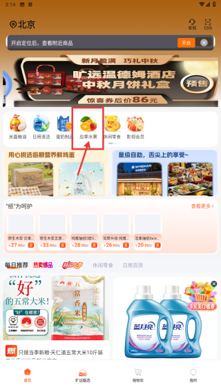 1、打开电商应用,在首页点击水果分类,进入水果商品列表页。