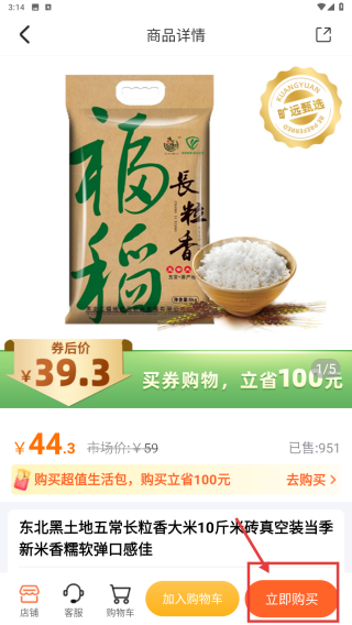4、在商品详情页,点击立即购买按钮,进行商品购买操作。