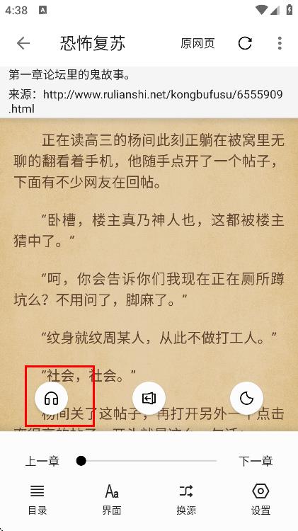4、随后在小说阅读页面,可点击耳机图标,开启听书功能。
