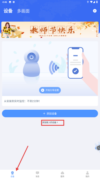 1、添加监控设备:打开易视云app,确保手机系统为Android 5.1及以上,在设备管理页面点击“添加设备”,对准监控设备的二维码扫描,完成连接后即可添加设备。