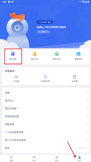4、点击我的选项,进入个人中心,可查看我的商城、我的订单等个人相关功能入口。