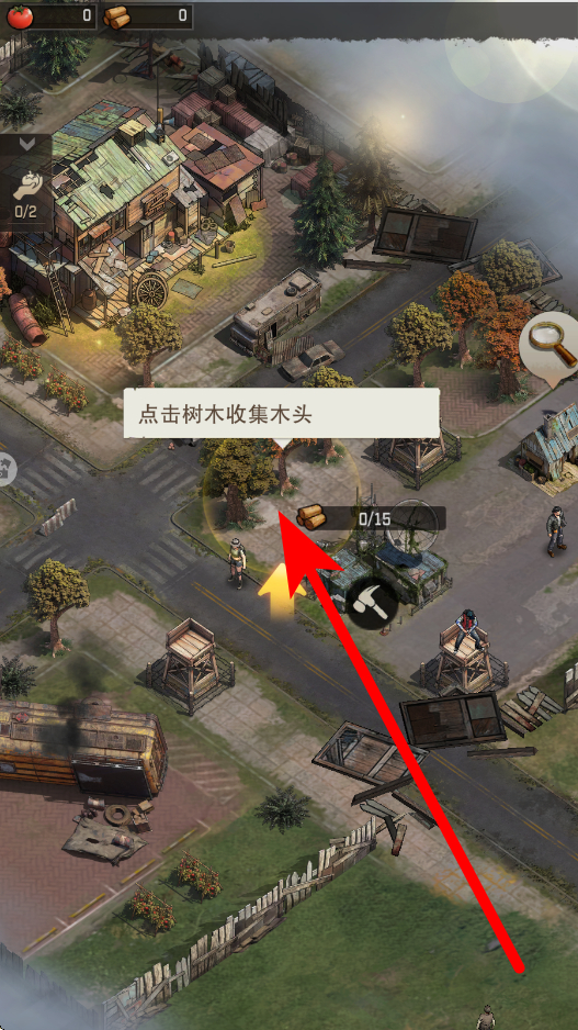 1、首先收集资源,场景中找到树木等资源点,点击树木,按照提示进行操作,收集木头等资源,这些资源是后续建设的基础材料。