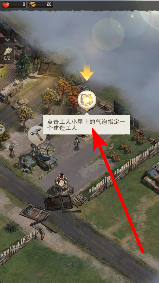 3、接着指定建造工人,找到工人小屋,点击小屋上的气泡,从中指定一个建造工人,让其参与到后续的建造工作中,推进建设进程。