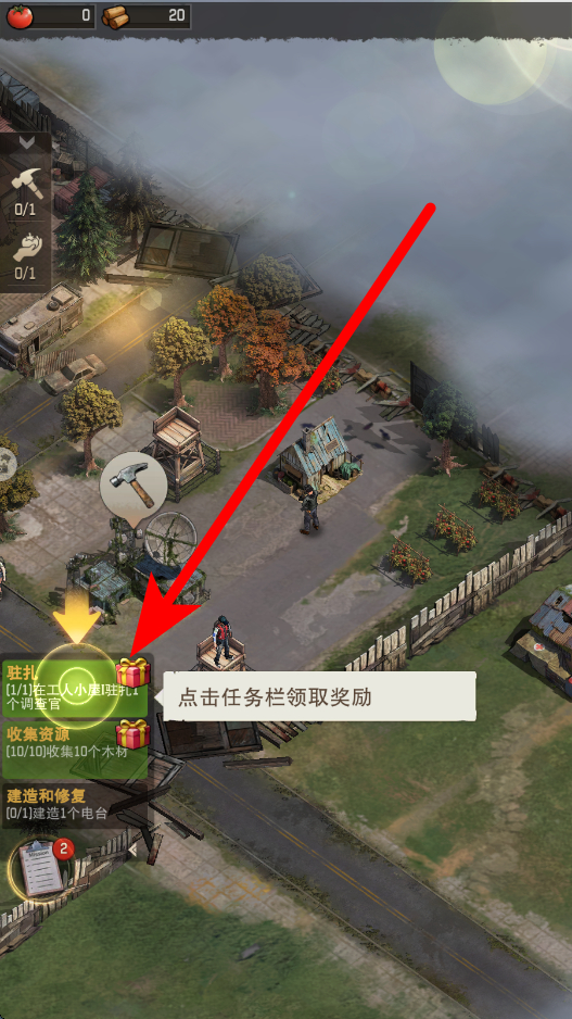 4、最后领取任务奖励,任务栏中查看可领取的奖励,点击任务栏,领取完成任务后对应的奖励,这些奖励可用于提升建设能力或获取更多资源。