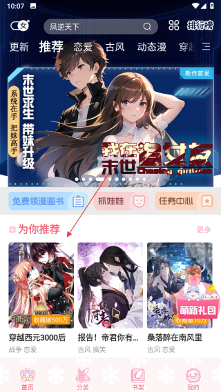 1、打开软件,在首页为你推荐中选择穿越西元3000后。
