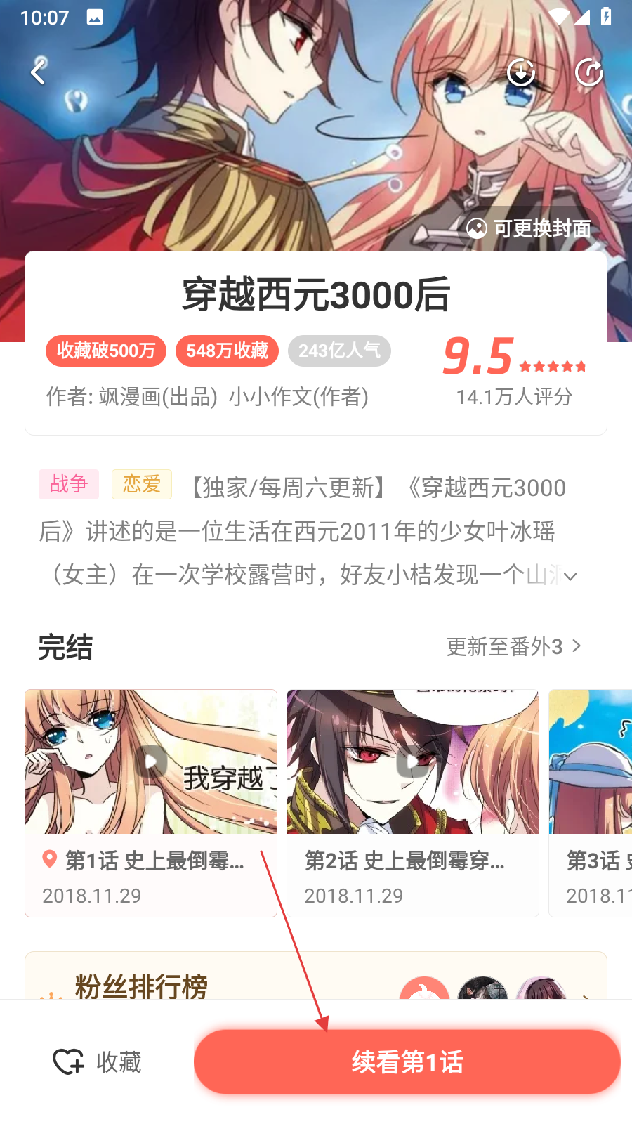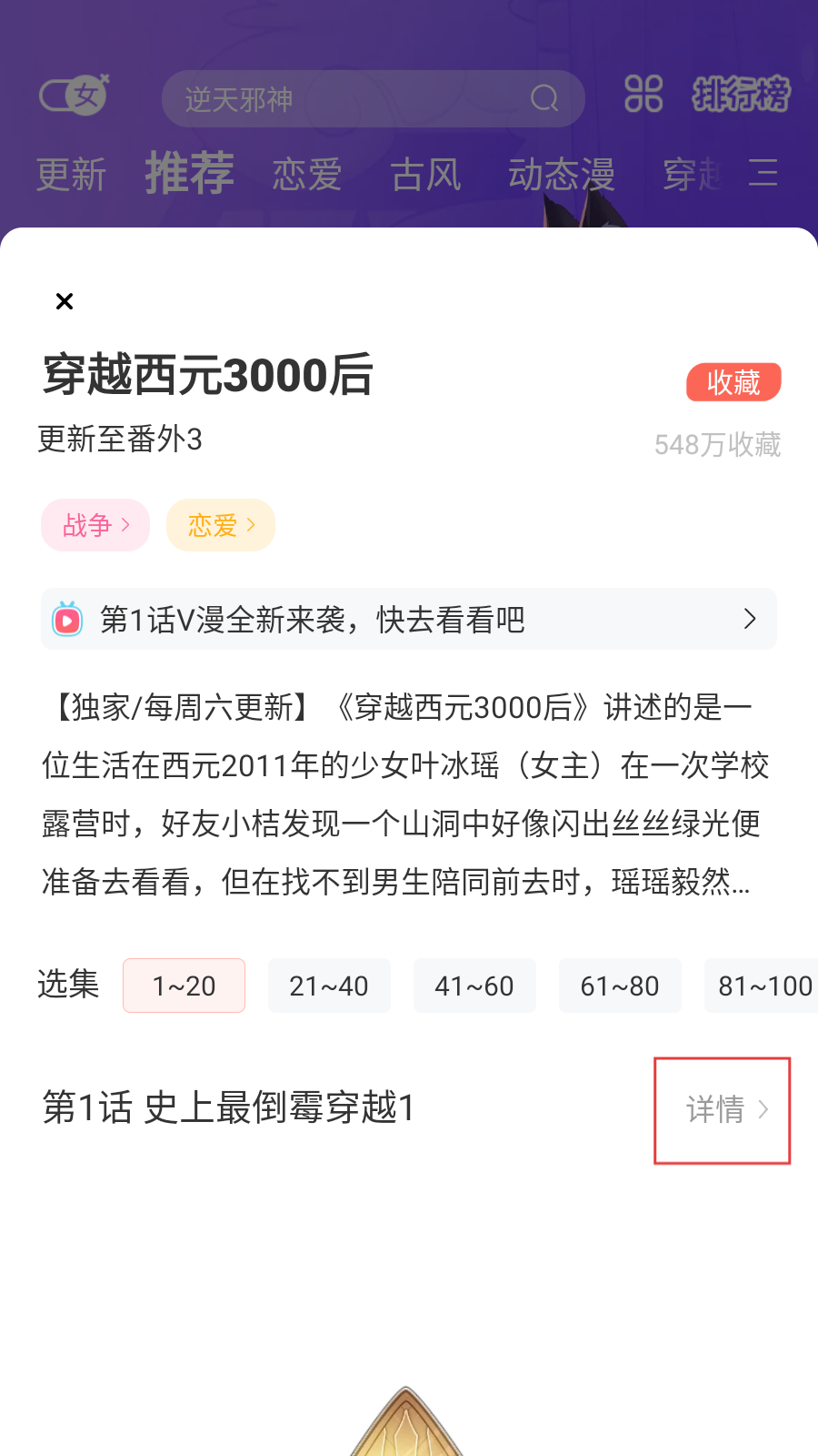 4、进入播放页后,即可观看穿越西元3000后第1话内容。