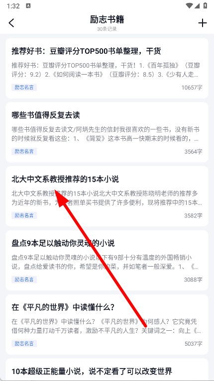 3、在励志书籍内容列表中,找到并点击条目,进入该内容的详情页面。