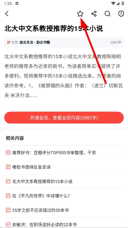 4、点击右上角的星形收藏按钮,即可将该内容收藏,方便后续查看。