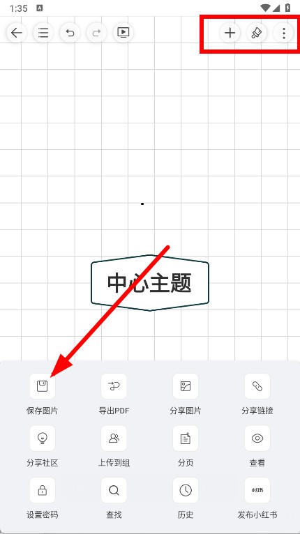 4、点击界面右上角的更多操作按钮,在底部弹出的菜单里选择保存图片。