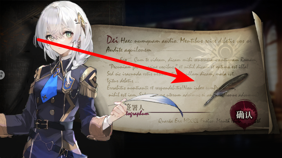 1、在游戏初始阶段,会出现带有文字的卷轴界面,按照提示完成签署操作,这是开启游戏冒险的重要一步,能让玩家正式进入游戏世界。