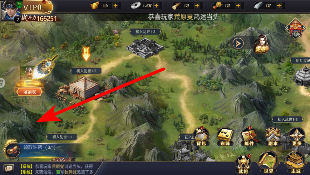 3、然后推进主线关卡,世界地图能看到不同的关卡标识,初入乱世等,点击对应的关卡区域,可进入该关卡,继续推进主线剧情,体验不同的战斗与故事。