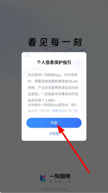 1、打开APP,在弹出的个人信息保护指引提示框中点击同意按钮。